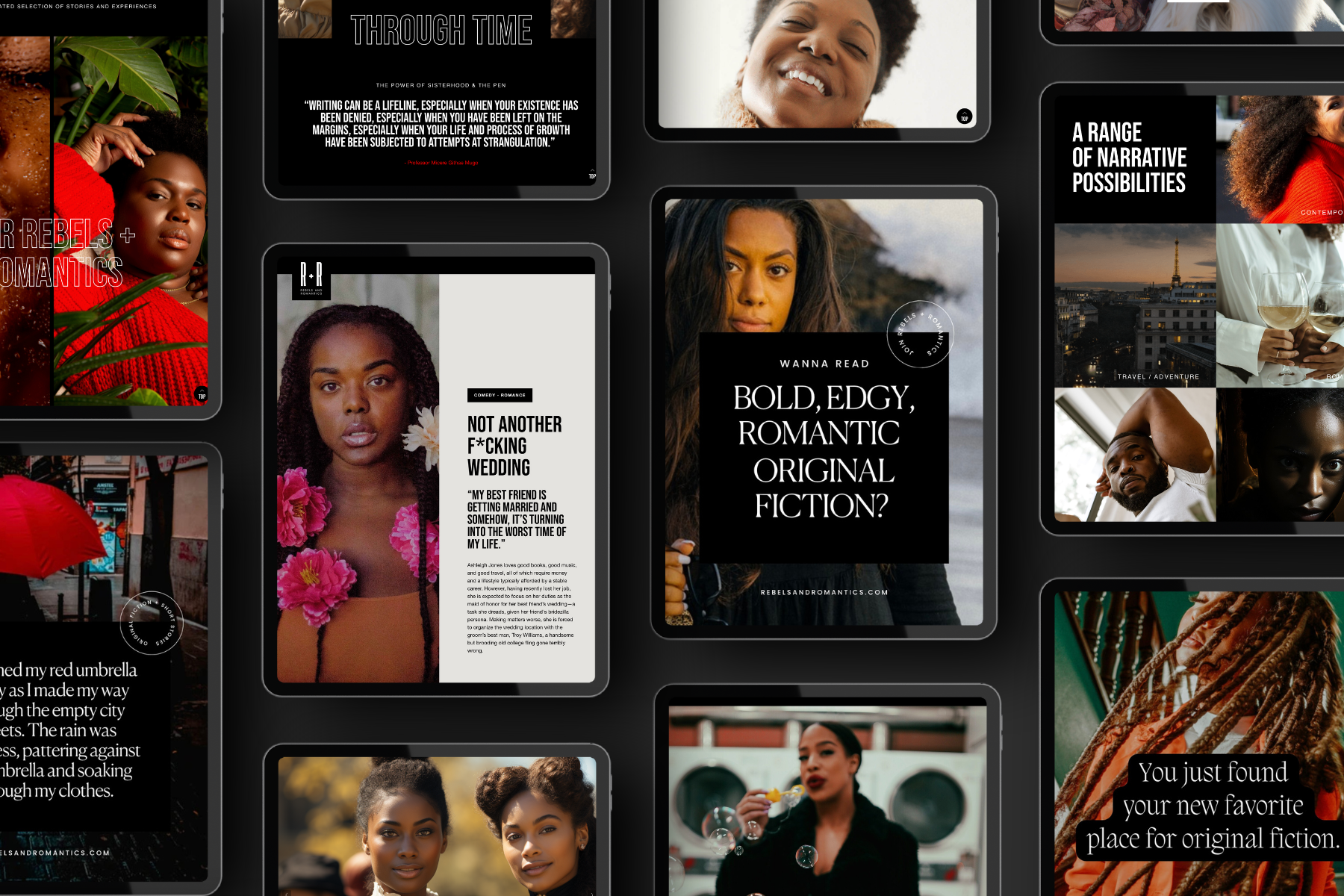 Rebels + Romantics—a [fiction-driven] lifestyle brand where bookish women and Black women especially can read, connect, and create. Where original and adapted fiction feature black women as the star of the story, across genres. And where emerging writers sharpen their skills.